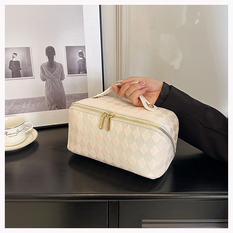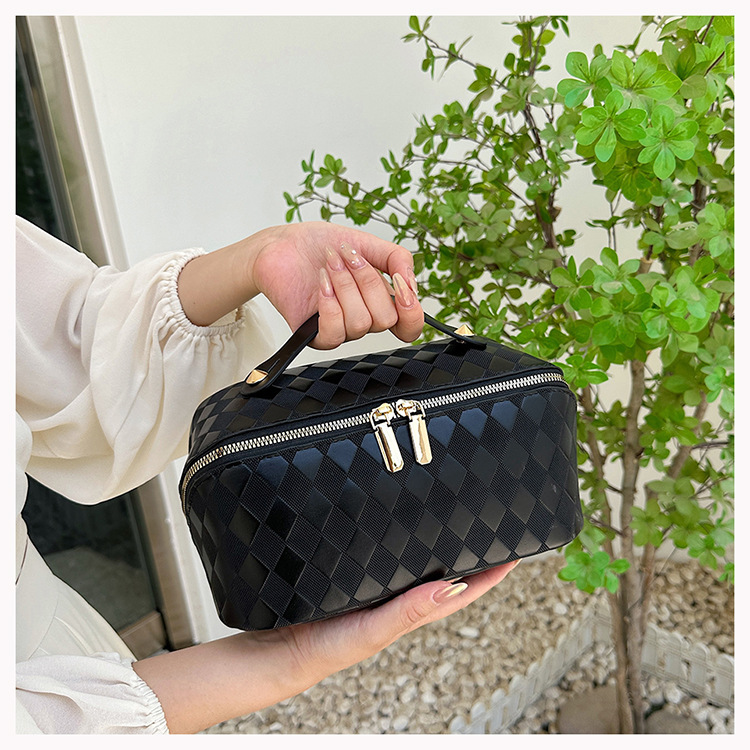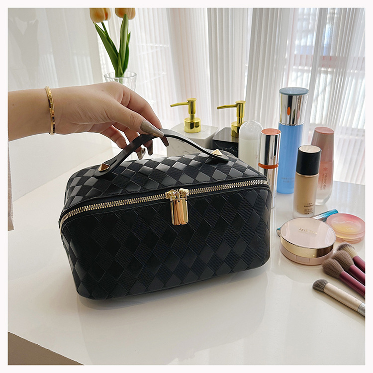 The large capacity cosmetic travel bag is being designed with multiple zones and compartments. It can be organized to fit cosmetics. They need the makeup tools.