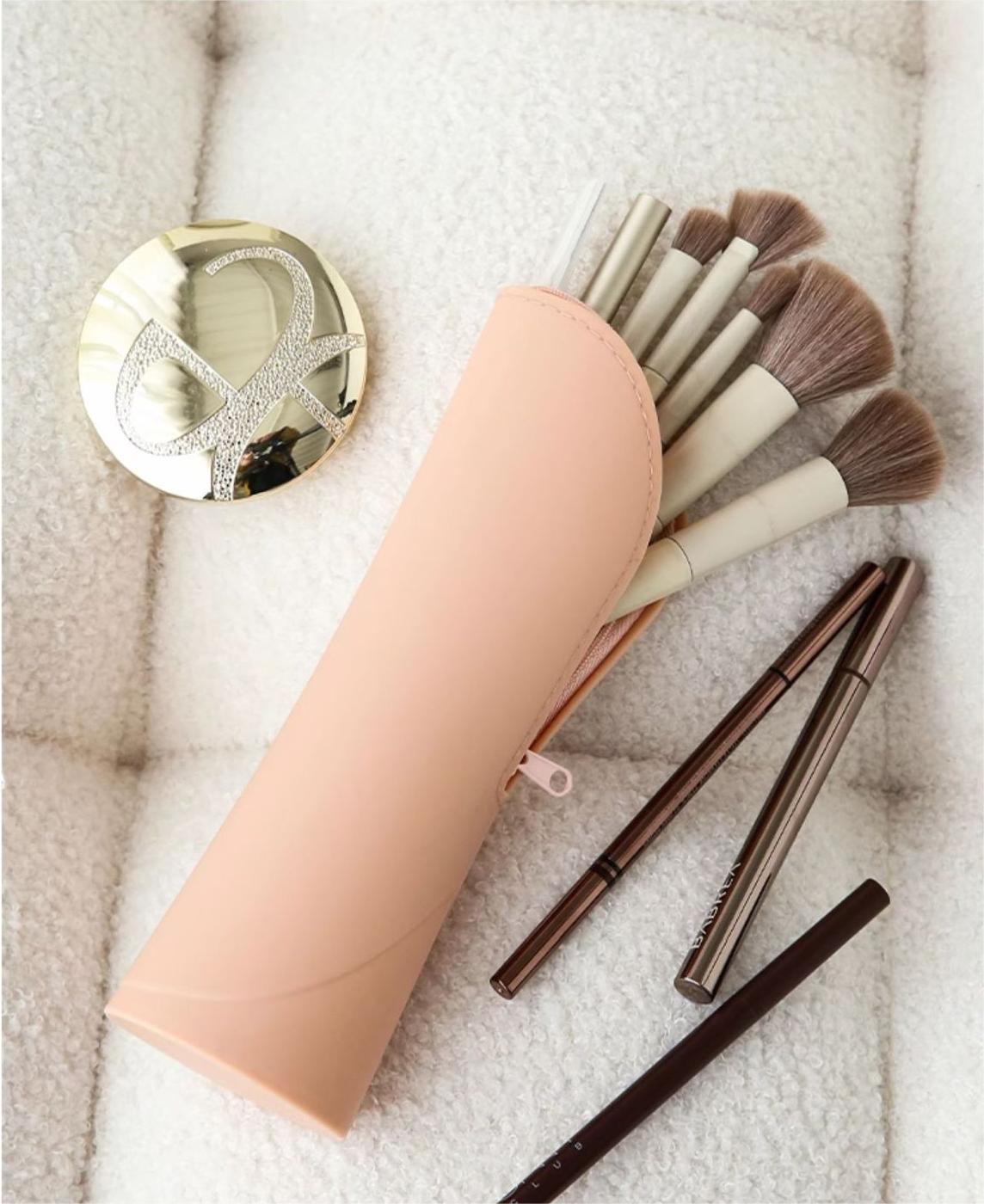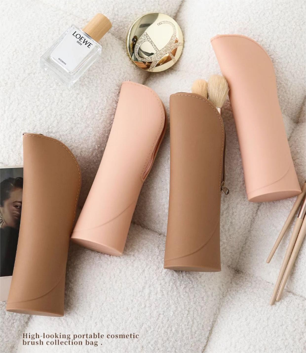 Peekingoose Makeup Brush Holder Silicone Makeup Brush Organizer Travel Makeup Brush Bag Make up Brush Case Small Cute Cosmetic Bag Mini Makeup Pouch Holds up to 10 Makeup Brushes