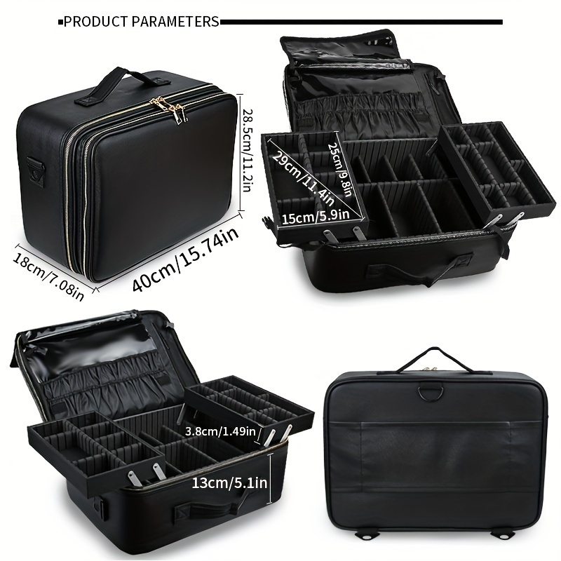 Peekingoose Nylon Professional Makeup Organizer Bag, Unisex-Adult Waterproof Cosmetic Case with Adjustable Dividers, Multi-Layer Storage for Beauty Tools and Accessories, Unscented