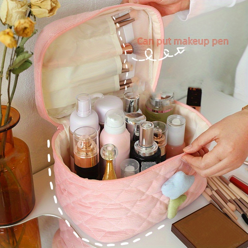Convenient and stylish: This makeup bag is perfect for storing all your cosmetics and toiletries in one place.